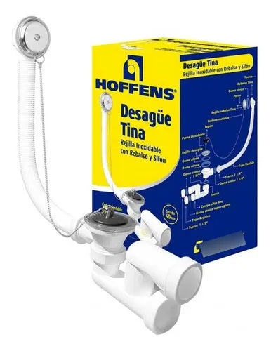 DESAGUE TINA COMPLETO REJILLA INOXIDABLE CON REBALSE Y SIFON HOFFENS